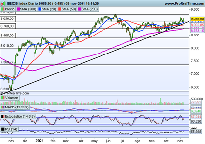 Entorno macroeconómico algo más normalizado el de esta semana que diverge con el que teníamos hace algunas sesiones. Un contexto donde con la subida acumulada del bono americano a 10 años comienza a recoger los datos de inflación. A vueltas con el aumento de las infecciones por Covid en una gran parte de la Unión Europea y una escasez de suministros que amenaza con perjudicar la campaña navideña, no deja que las bolsas europeas sigan avanzando a buen ritmo.
