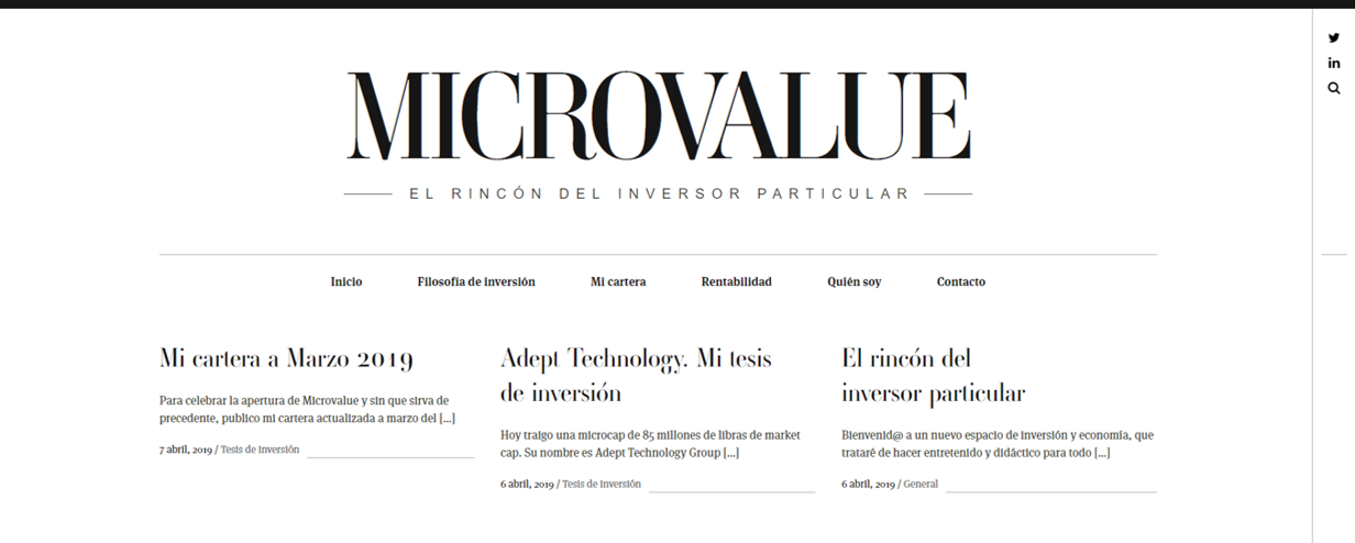 Nace microvalue, el rincón del inversor particular. Será un nuevo espacio en el que publicaré artículos, tesis de inversión y muchas cosas más. Os animo a compartirlo y a que lo conozcáis por dentro: