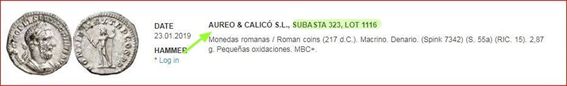 Tan solo nos resta buscar la empresa de subastas, así como su número y el lote en el que se incluyó.