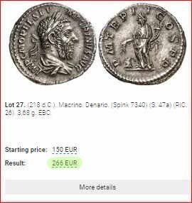 En resumen, el valor de nuestra moneda romana asciende a 313€.
