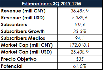 En base a los usuarios estimados para dentro de un año, podemos hacer una aproximación de los ingresos de cara al 3Q.2019:
