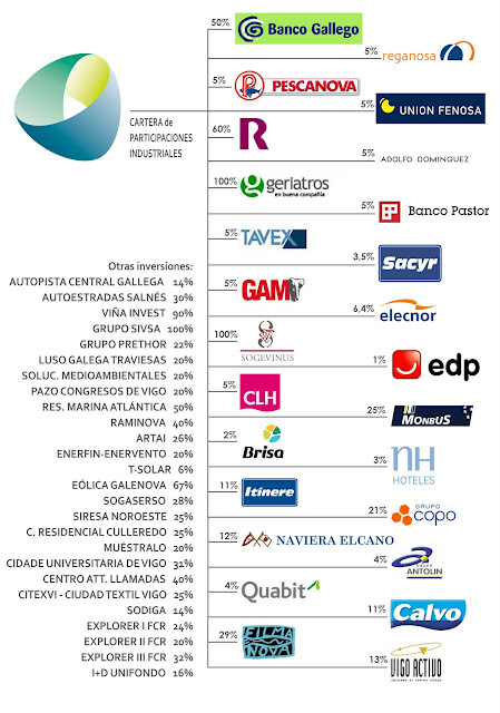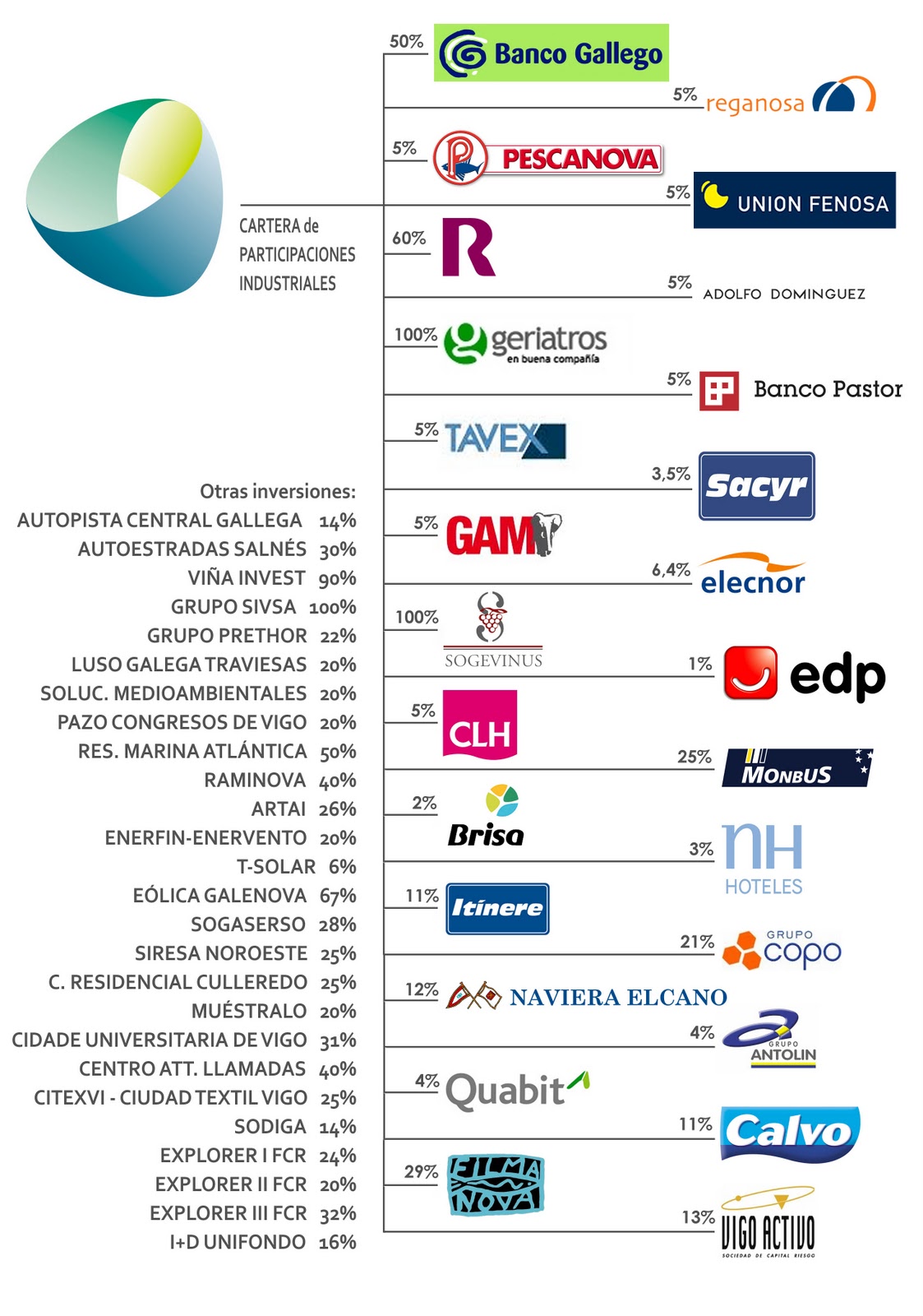 Con el objetivo de obtener capital y reducir el tamaño de su balance para incrementar su solvencia, una de las medidas tomadas dentro del plan fue la venta de la gran mayoría de participaciones de las carteras industriales que Caixanova y Caixagalicia poseían en empresas relacionadas sobre todo con sectores estratégicos para la economía gallega (sector financiero, alimentario, energético, astilleros, producción audiovisual, textil, industria del automóvil, etc.). De esta forma Novacaixagalicia vendió su participación en empresas como la multinacional alimentaria Pescanova, la compañía de telecomunicaciones R, o la eléctrica portuguesa EDP. El valor de mercado de estas participaciones rondaba los 400 millones de euros con los que la nueva caja podría contribuir a su recapitalización.