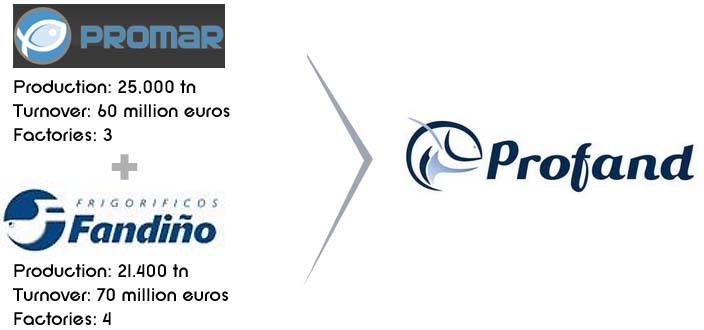 The new company will be called Profand Group, and it will have a total turnover of around 160 million euros, 7 big factories -3 of them in Spain (Vilagarcía, Sada and Avilés) and the other 4 located abroad (in Peru -2-, Argentina and Senegal)-. It also will have a big fleet of ships that operate in the best fisheries of the world (Nord Atlantic, Peru, Argentina, Estonia...) and commercial offices in several countries.