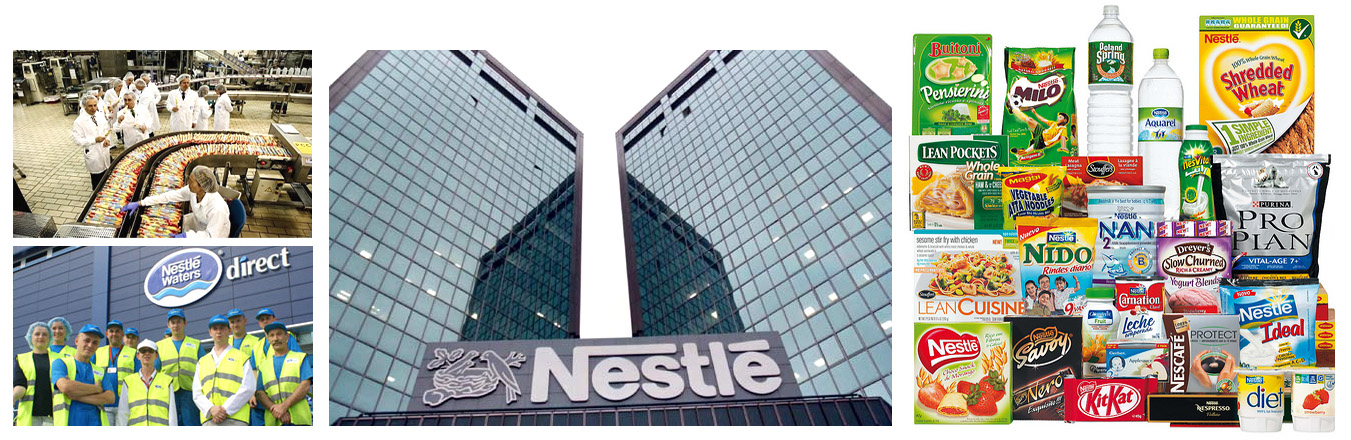Nestlé is the largest food company in the world. Its headquarters are in Vevey, Switzerland, and its products are sold in about 84 countries, with production centers all around the world. The firm markets all kind of food products, from bottled water, ice creams or baby food, to frozen food, coffee or even pet food. In 2008 it had a turnover of around 121.300 million dollars and more than 280.000 workers.