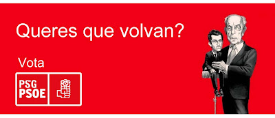 - PSOE, campaña elecciones gallegas. En la campaña del PSOE para las elecciones autonómicas en Galicia del 2009, se optó por recurrir a la "desgastada" figura de Fraga para amedrentar a los votantes. En cierto modo era como amenazarles. Pienso que siempre es preferible destacar las fortalezas y virtudes propias que sacar a relucir los defectos de los contrarios, especialmente en política, donde hay que ilusionar a la gente y ganarse su confianza.
