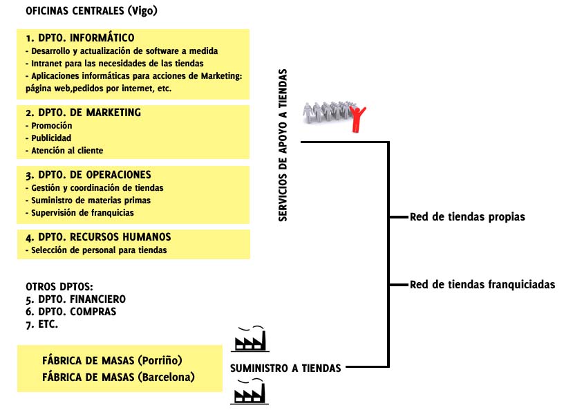 Pizza Móvil ofrece soporte a todas sus tiendas desde sus oficinas centrales: apoyo informático, acciones de marketing, servicio de selección y contratación de personal y suministro desde su departamento de operaciones.