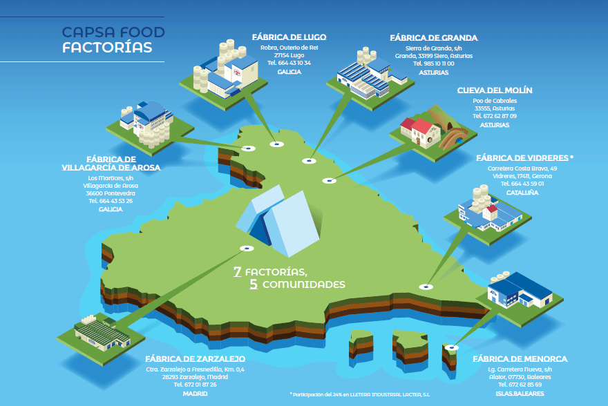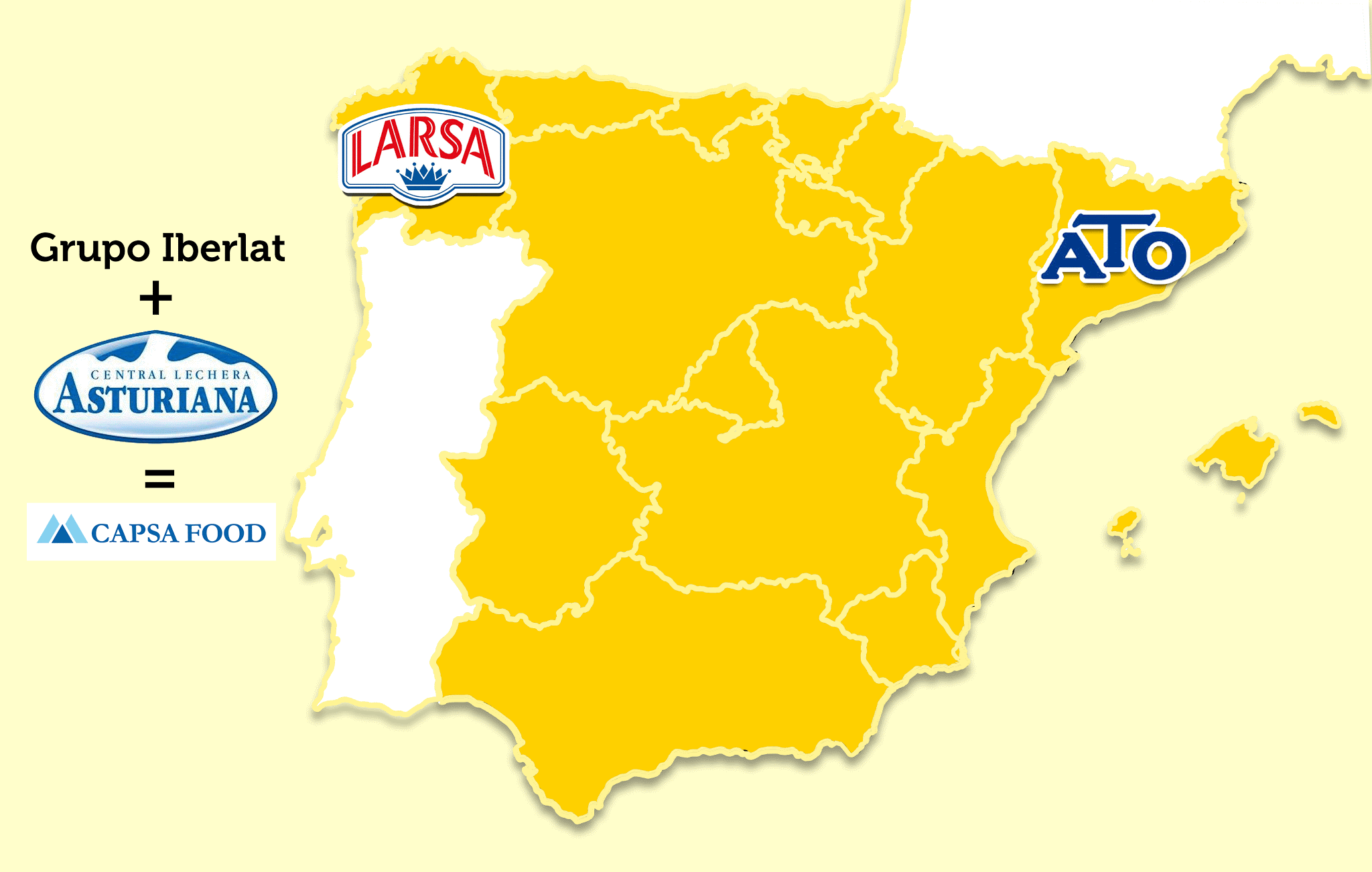 Es de esta forma que la nueva Corporación Alimentaria Peñasanta (CAPSA) es el resultado de la fusión de Central Lechera Asturiana (CLAS) con la francesa Bongrain, y cómo LARSA y ATO pasan a formar parte del nuevo grupo CAPSA.