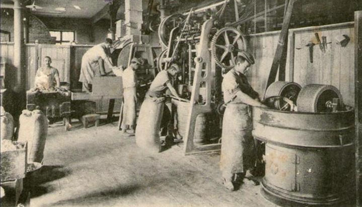 Su producción inicial (y la colocación de las diferentes variedades en su alveolo correspondiente) se realizaba de forma completamente manual a base de mano de obra, pues no existía máquina que hiciera semejante labor.