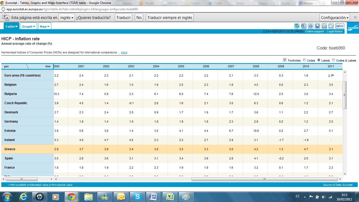 Y ya que estamos sacamos los datos de inflación, (tercer criterio) que nos da lo siguiente: