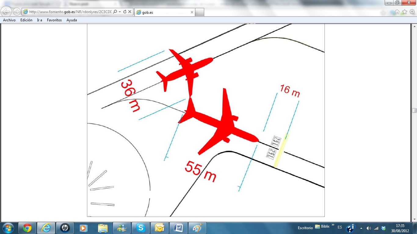 En el punto de espera más cercano está situado un avión de American Airlines, de gran longitud, que no se ha colocado todo lo adelantado que se puede, debido a que desde la cabina no se ven las marcas en el suelo, (¿Por qué no se le ocurre levantar unas banderillas para que los pilotos vean desde la cabina?). Por detrás se acerca el avión de Ryanair para ponerse a su lado y calcula mal y colisionan, el gráfico está en el informe: