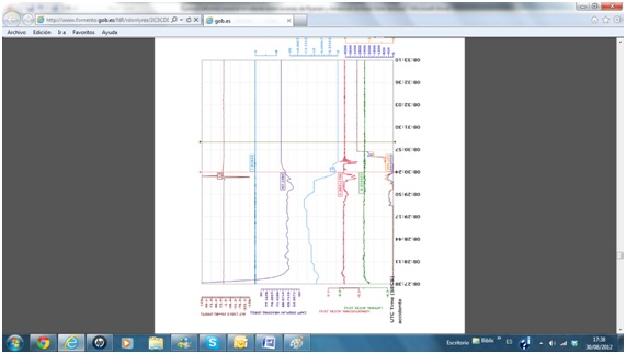 Y resulta que luego se graba encima de las grabaciones y se cogen los datos del avión de Ryanair y se pasa de explicar un pico curioso en el medidor de la altura, unos segundos después de un giro brusco y un frenazo. (marcado con un 13 en el gráfico del informe). Oiga, no soy experto, pero si estos son los datos de altura, lo que tenemos es una subida y bajada puntual que no puede ser otra cosa que un impacto que tuvieron que notar los pilotos de la misma forma que lo notaron los pasajeros: