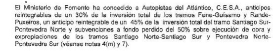 Pista 2: En el caso de la AP9 hemos asumido 4000 millones de pesetas de rescate unos años después de su construcción.