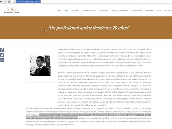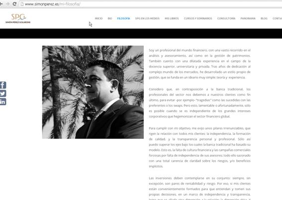 Pues me gustaría señalar que la idea de que Simón Pérez puede captar clientes para asesoramiento financiero sale de unas cuantas cosas de su web: