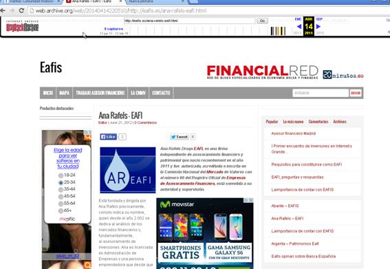 Voy a poner un pantallazo de la web de Ana Rafels tras una actualización de 2014; (descartando por tanto que la página no se hubiese actualizado tras la baja de dicha persona de la cnmv):
