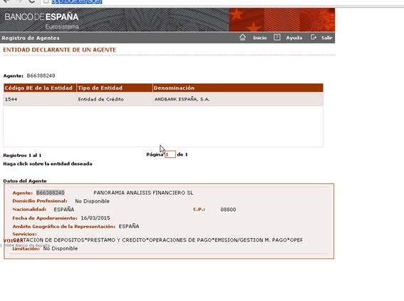 En todo caso efectivamente aparece PANORAMIO como agente de ANDBANK desde el 16 de marzo de 2015 con unas funciones claras: