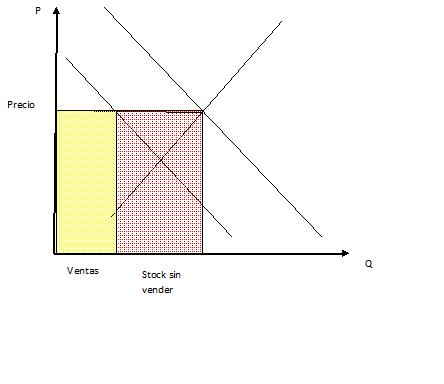 Lo que ocurriría es que en este mercado, tanto la demanda del bien, como el precio caerían; lo cual significa invariablemente que la facturación de las empresas que producen el bien se reduce y pasa de ser el área grande al área sombreada pequeña.