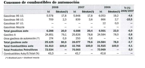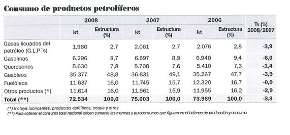 A diferencia de los datos sobre tráficos disponibles en Fomento, en el caso del consumo de productos petrolíferos, los últimos datos que he encontrado corresponden a 2008, frente a los de 2009 de Fomento. Aunque siempre será mejor tener los datos actuales, podemos admitir que la situación hoy es similar a la de 2008.