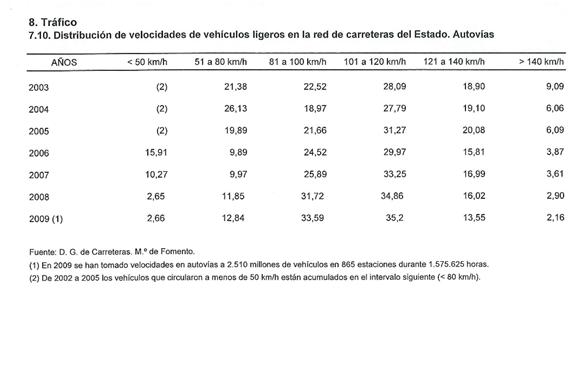 La segunda cuestión es tratar cual va a ser la reducción efectiva de velocidad. El otro día hemos visto como más de la mitad circulaban a menos de 100; En este caso yo he asumido que la reducción será de la totalidad de los kilómetros recorridos entre 121 y 140. Se espera un incremento de las multas y además es lógico que cuanto más bajo sea el límite menos personas lo cumplirán. El caso es que vuelvo a poner la tabla para refrescar la memoria: