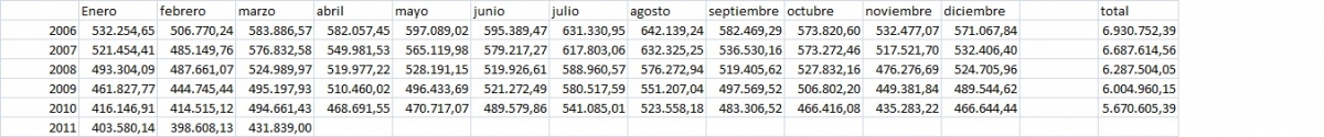 Por cierto, cuelgo la hoja de Excel que he usado para los cálculos, porque entiendo que los datos se verán mejor que en los cuadros que he colgado. Debe tenerse en cuenta que todos los datos provienen de Ceres pero los he tenido que trasladar a una hoja propia, porque el citado organismo los proporciona anuales.
