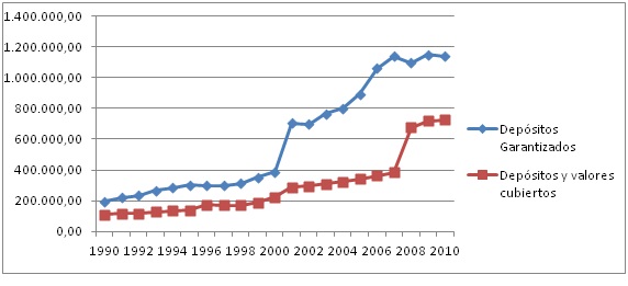 En este caso, debemos tener en cuenta que al final el volumen de depósitos es una variable importante para entender la evolución del Fondo de Garantía de Depósitos, pero tan solo indirectamente ya que al final lo que debemos tener en cuenta es que el Fondo de Garantía de Depósitos no garantiza la totalidad de los Depósitos, sino que tiene unos límites de cobertura.