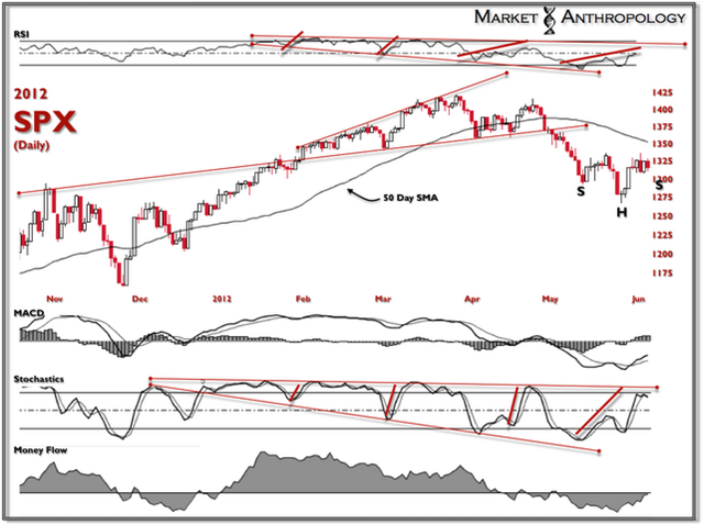 Esta semana, aquí hacían una comparativa entre la situación actual del mercado y la comparaban con el del 2007. Podemos ver en las imágenes que el patrón es muy similar: