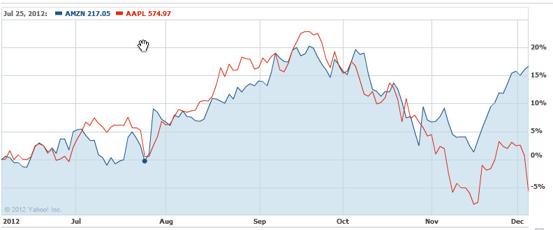 Vamos a hacerlo sobre el spread AAPL/AMZN. Este spread es un spread muy común y que suele funcionar bastante bien.
