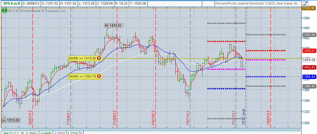 Para los que operamos vendiendo opciones, trabajando rangos, creo que es más sencillo pues no dependemos de acertar el movimiento. Si miramos el gráfico del S&P500, y aprovechando la alta volatilidad, podemos vender opciones puts o hacer Bull Puts con strikes shorts en 1300.