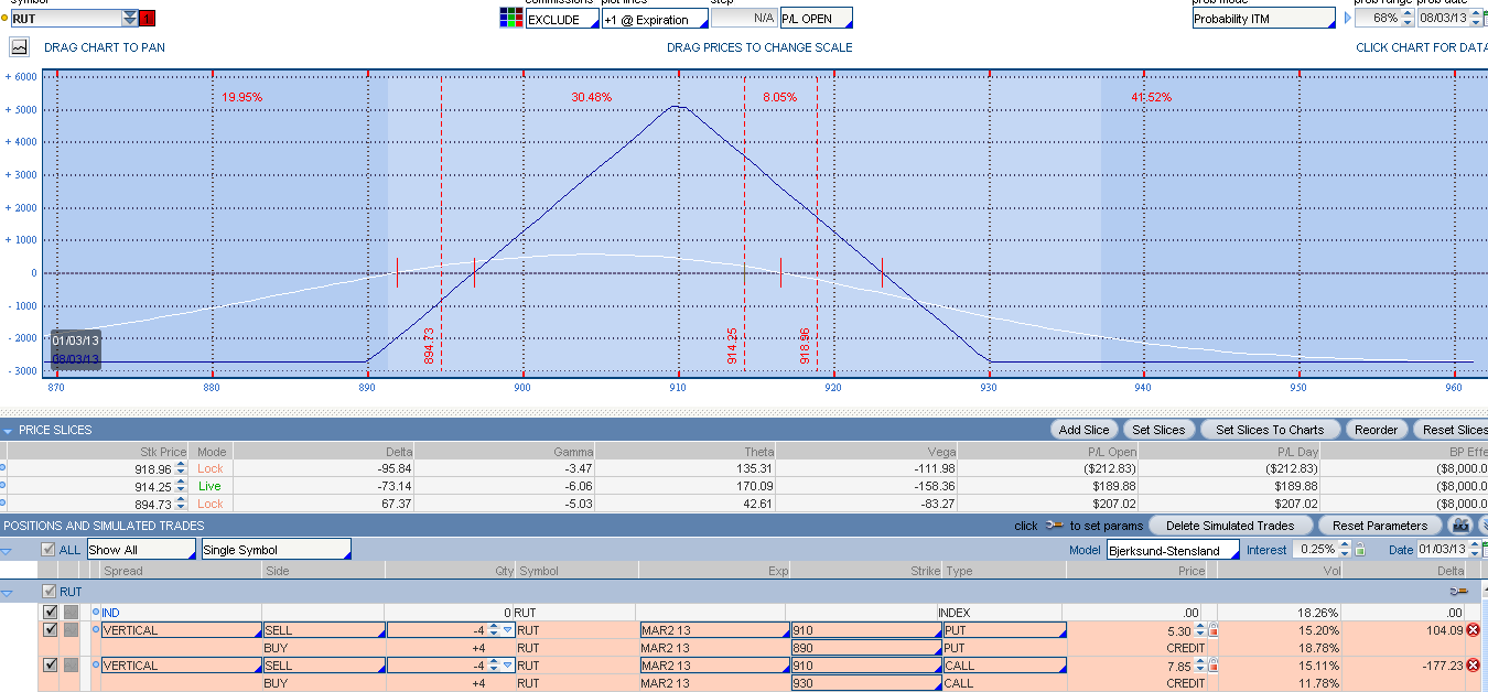 La primera Weekly Butterfly de momento está bien situada. Sobre el RUT y con un beneficio del 2% sobre margen. La posición expira el jueves.