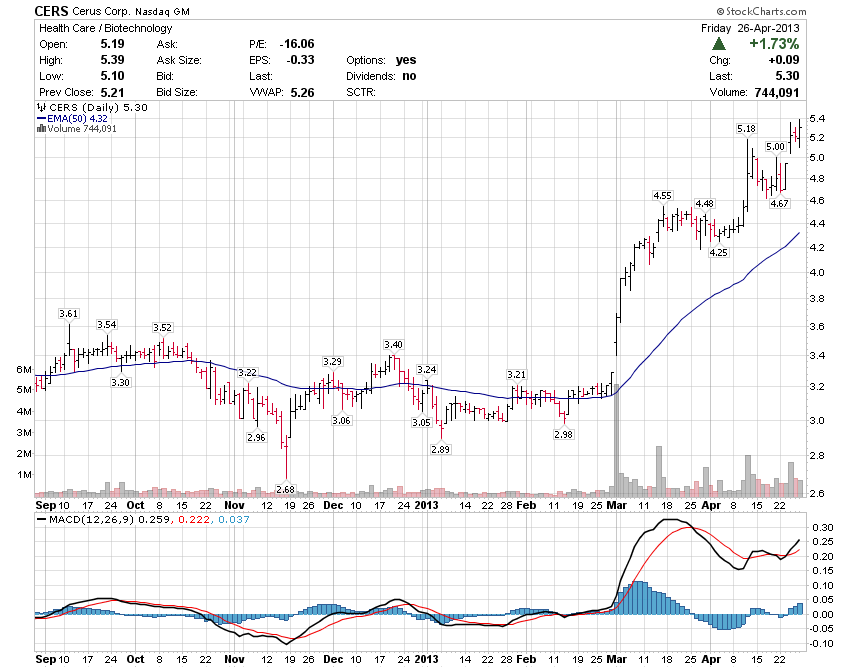 Una acción que me gusta y que espero se desarrolle de forma alcista en los próximos meses es CERUS CORP (ticker: CERS).