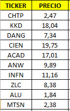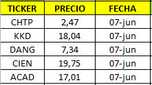 Las posiciones que quedan abiertas se podrían seguir manteniendo ajustando stops, pero no es la filosofía de la prueba. Para la próxima semana, hacemos una nueva selección.