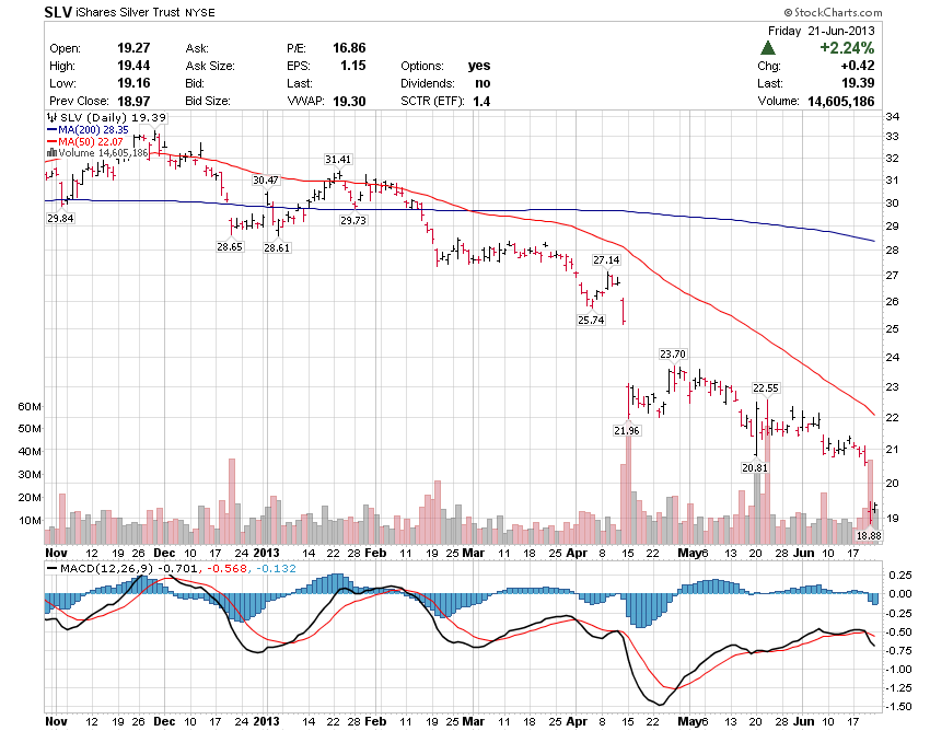 Veamos su gráfico, a través del ETF SLV. Podemos ver que la tendencia es claramente bajista.