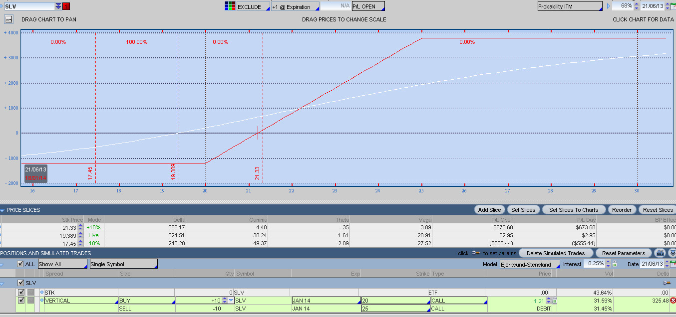 Podríamos realizar el siguiente spread: BULL CALL JAN14 20/25 = LC JAN14 20 + SC JAN14 25 ($1.21)