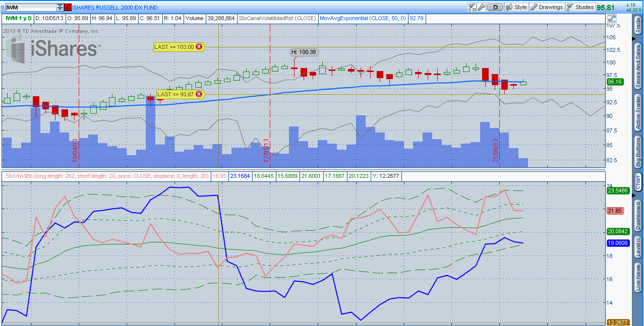 El IWM se está moviendo una desviación estándar más días de lo que es habitual, y eso es signo de que hay mucho nerviosismos en el mercado y que se está sobre reaccionando a cualquier evento, noticia, declaración, etc. Lo que necesitamos es que este nerviosismo no se traslade a nuestras estrategias y éstas tengan un plan sólido y robusto.