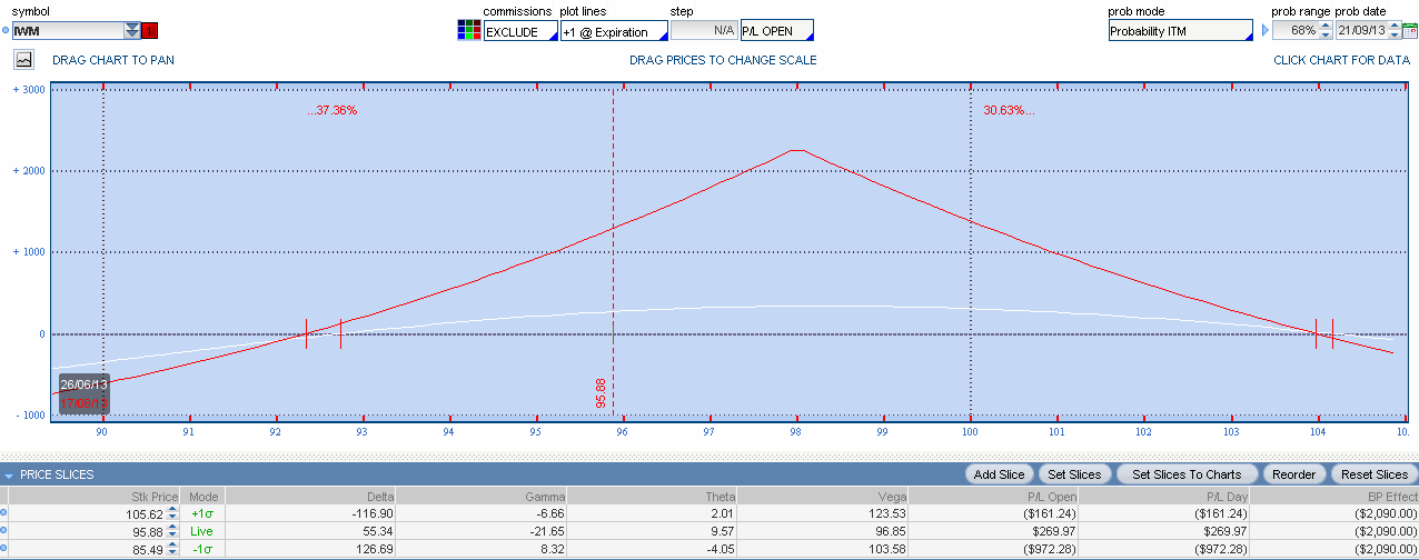 Si decíamos que iba a ser una operación tranquila para un verano de incertidumbre, de momento se está cumpliendo. La operación (IWM Call Calendar 98) va a ritmo de 1% al día. De momento llevamos un 13.5% y como advertíamos, nos estamos quitando todo el ruido del mercado, si bajar un 3%/4% lo podemos llamar ruido. El verano puede ser calentito, por lo que habrá que seguir el plan de trading, porque es probable que el mercado nos ponga en dificultades.