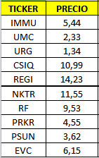 Para la próxima semana, esta es la selección de acciones, con precio de entrada antes del cierre: