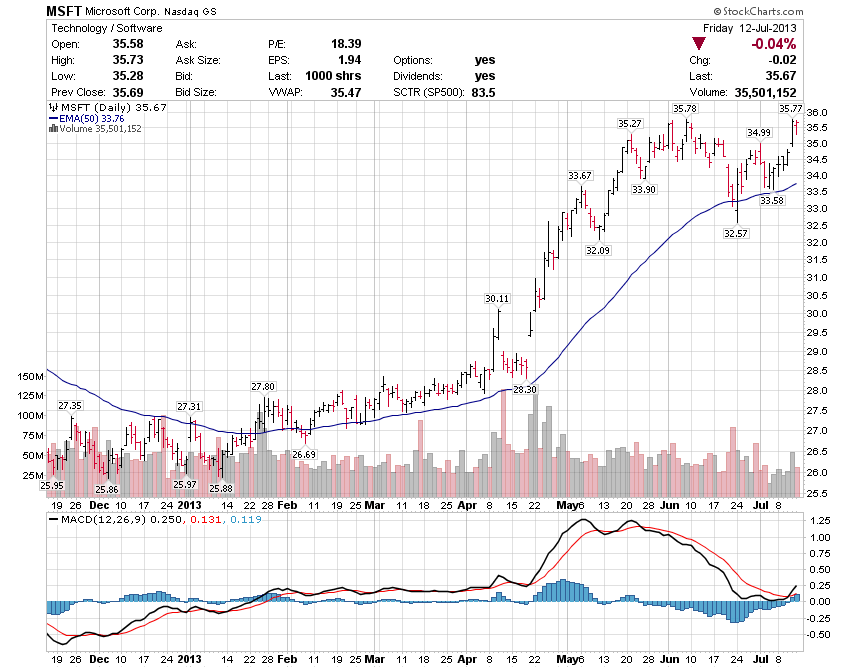 En Microsoft teníamos SP JUL 33 (-0.75). Hoy el precio de la acción cerraba en $35.67