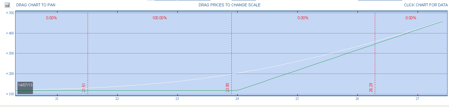 Lo que si que hay que tener MUY claro es que no estamos participando en el mercado de forma gratuita. Si miramos el gráfico de riesgo la posición sería algo así: