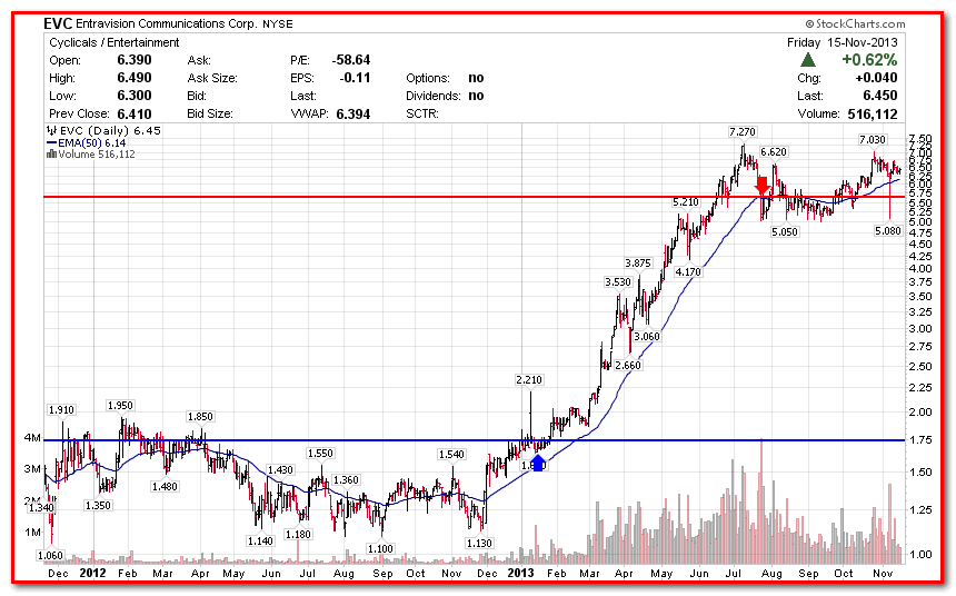 Vamos a ver con un gráfico el objetivo de una entrada, en este caso con la acción de ticker EVC::