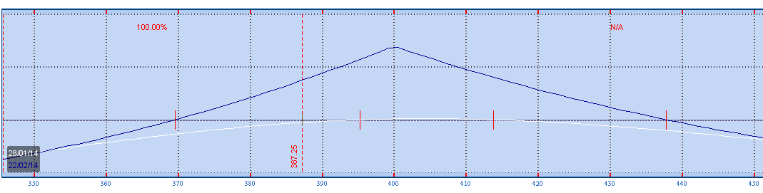 Sin embargo, a modo didáctico, voy a mantener la posición durante earnings. En teoría, deberíamos ver un desplome importante de volatilidad (Volatility crush), y nuestra posición debería entrar en fuertes pérdidas.