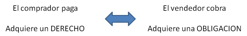 La filosofía es exactamente la misma que cuando vamos a un comercio y compramos un producto. Yo, al pagar por ese producto, tengo el derecho de llevármelo, mientras que el vendedor estará obligado a entregármelo, y por dicha obligación recibirá una prima (el coste del producto).