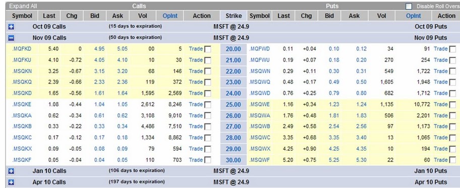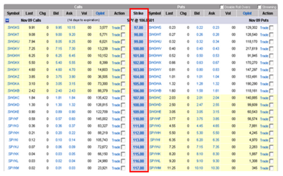Si observamos en la cadena de opciones, en la columna central, podemos ver los precios strikes correspondientes para un mes en concreto.
