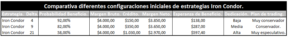 Tres estrategias que con tan sólo modificando la delta de entrada y su probabilidad de éxito cambian completamente en su gestión, en su plan de trading, en su perfil de riesgo, en su dedicación, y en el tipo de trader de generación de ingresos en definitiva.
