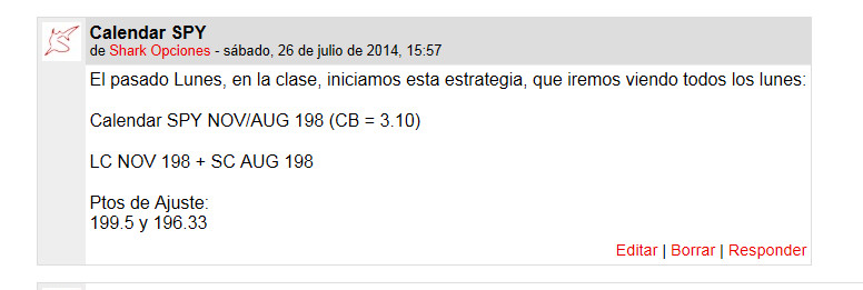 Ayer, en la clase de todos los Lunes, dentro del Programa 'Spread Trader', además de repasar la situación actual de mercado, repasábamos la estrategia de opciones abierta hace unas semanas y que se trata de una Call Calendar en el SPY.