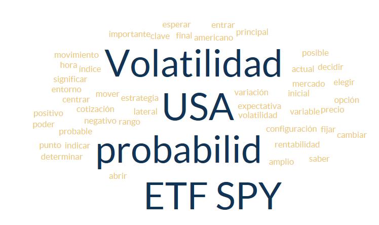 Si nos centramos únicamente en el principal índice del mercado USA, en el SP500 y más concretamente en el ETF SPY, una expectativa lateral podría significar que se moviera unos 10 puntos por arriba o por debajo de su cotización actual. El rango de 195-215 es muy probable para finales de año. Ya sé que es un rango muy amplio, pero es lo que indica la probabilidad. Si ahora nos centramos en su nivel de volatilidad implícita, 13%/14% es la actual, podríamos tener un incremento de +2% en caso de retroceso del precio, y de un descenso del -1.5% en caso de que el precio tuviera un movimiento lateral alcista. Veo poco probable que tengamos grandes variaciones de volatilidad.