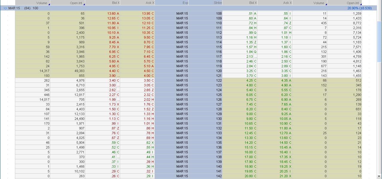 La cadena de opciones: muy, muy líquida. Nada que ver con la cadena de ABG que vimos la semana pasada.