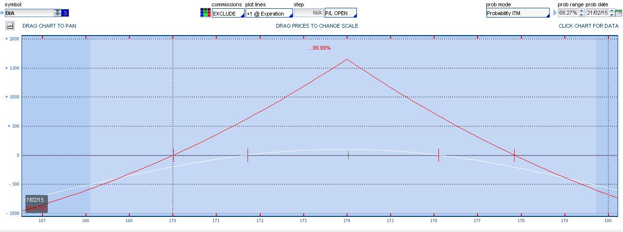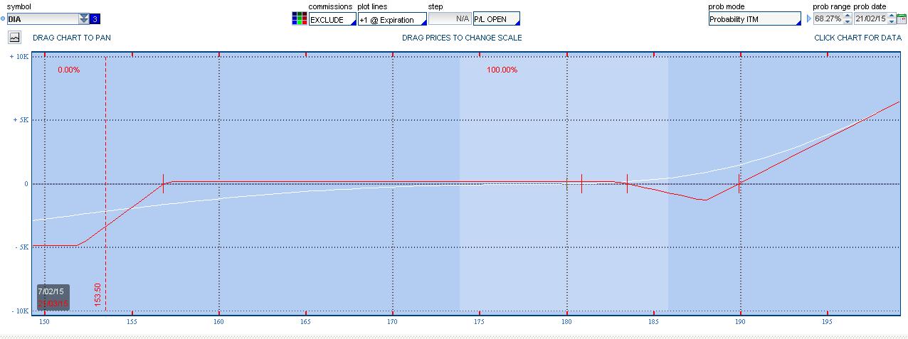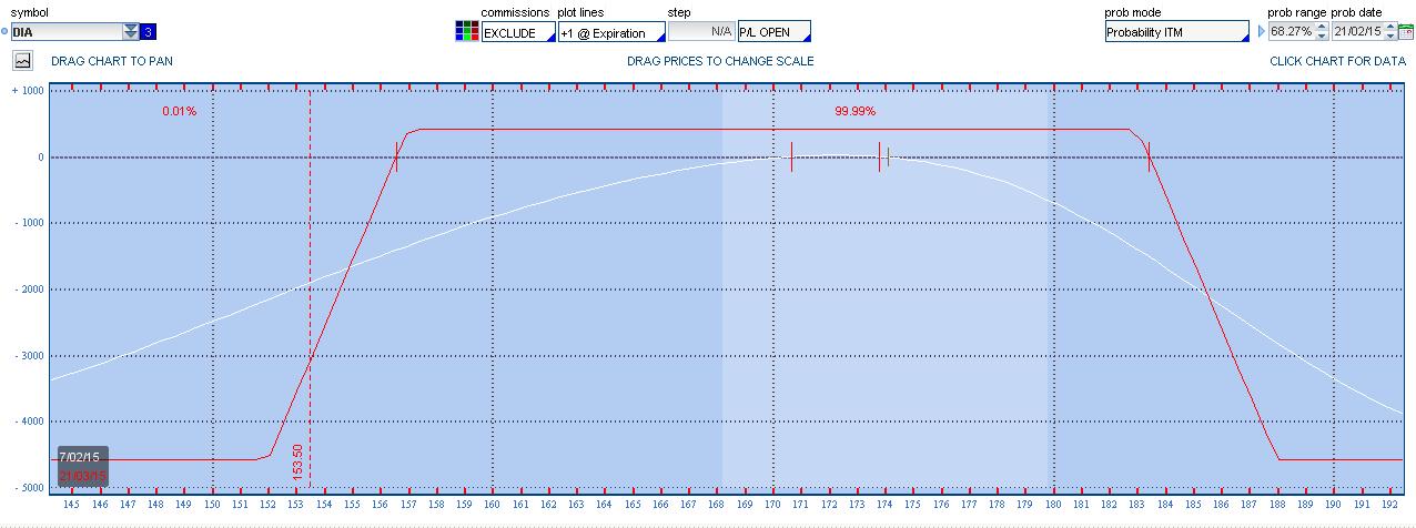 El segundo ejemplo es una Iron Condor de vencimiento marzo 2015. La primera imagen es la Iron Condor en configuración inicial (estrategia no real)