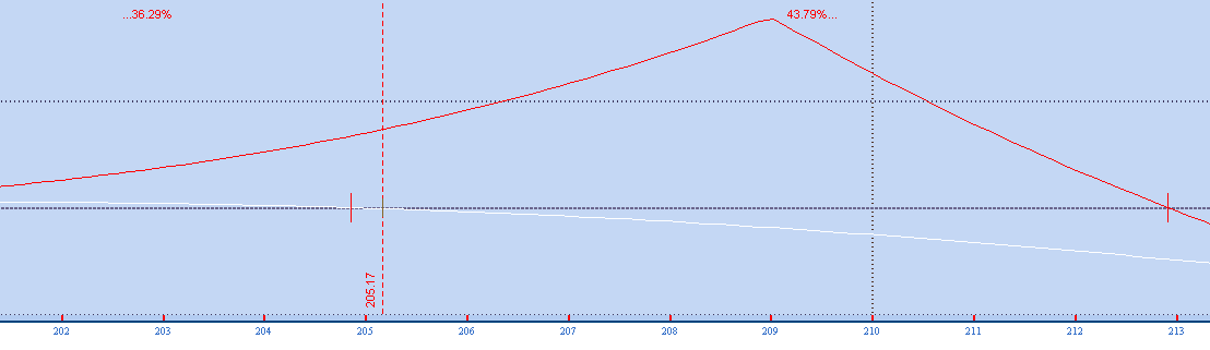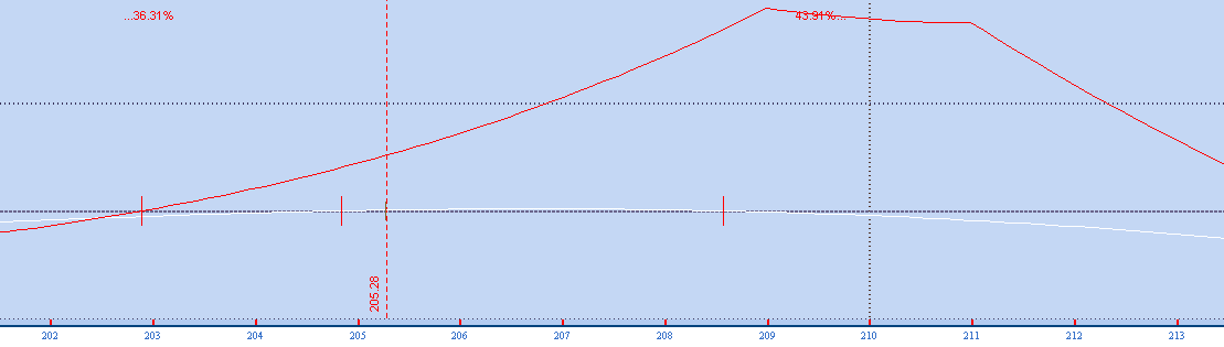 Y si el mercado sube ¿Qué haremos?, con un precio sobre 207/208, la estrategia podríamos modificarla a algo parecido a ésta: