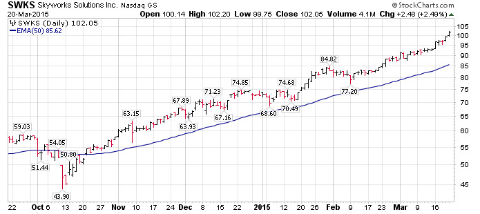 Por ejemplo, de ser así la sección, esta semana recomendaríamos a Skyworks Solution (SWKS):