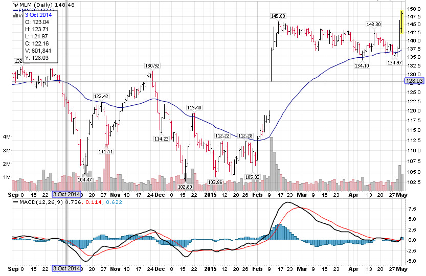 La acción en concreto es MLM (Martin Marietta Materials), actualmente en los $147 y con un valor intrínseco de unos $152, aunque creo que podría llegar bien a los $160.