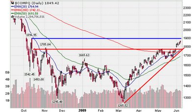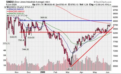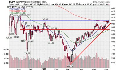 El SP500 presenta un dibujo similar al Dow Jones. Resistencia en 950 y soporte a vigilar en 910. La tendencia alcista sigue activa. El volumen tampoco acompaña.